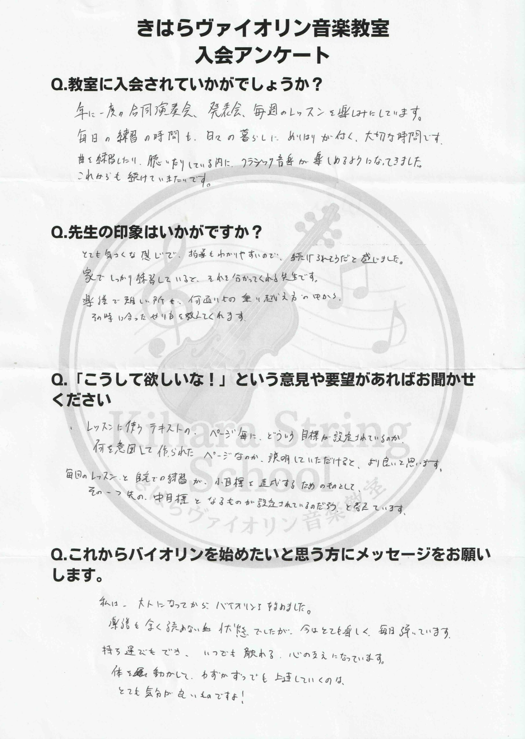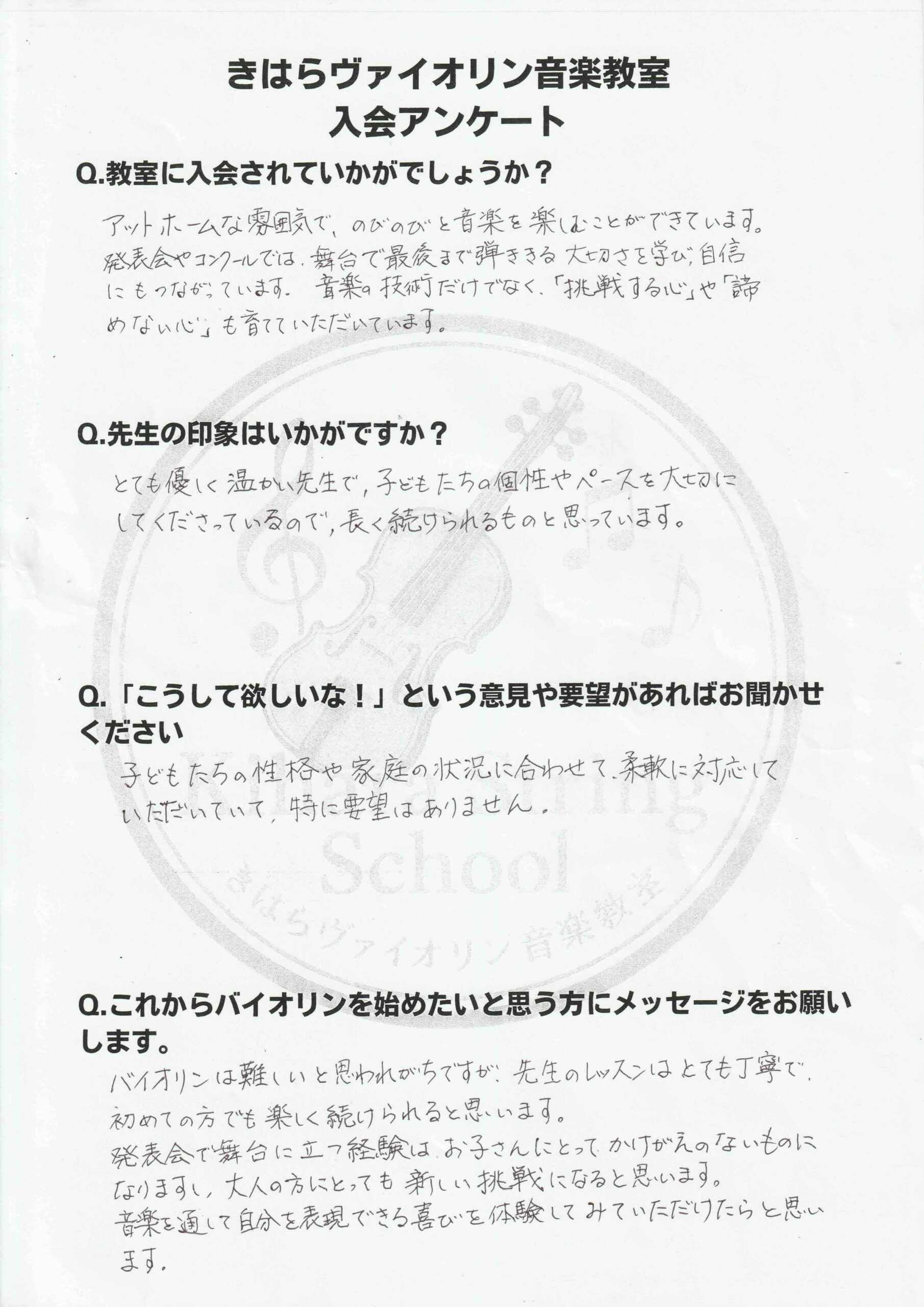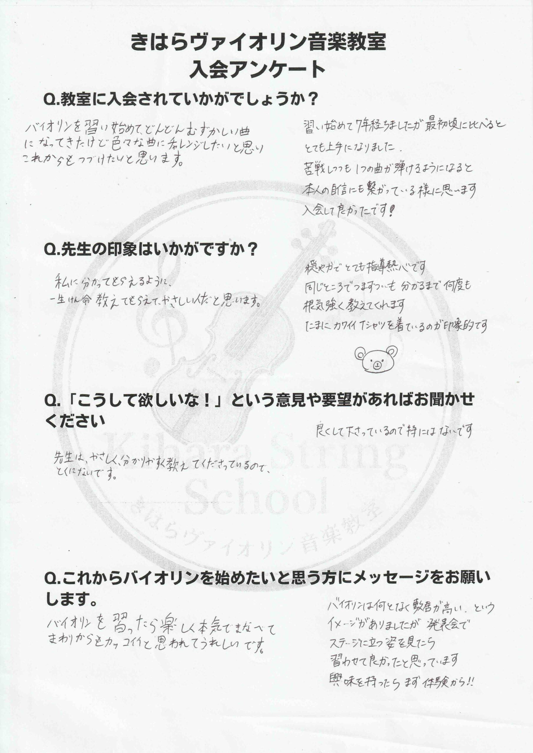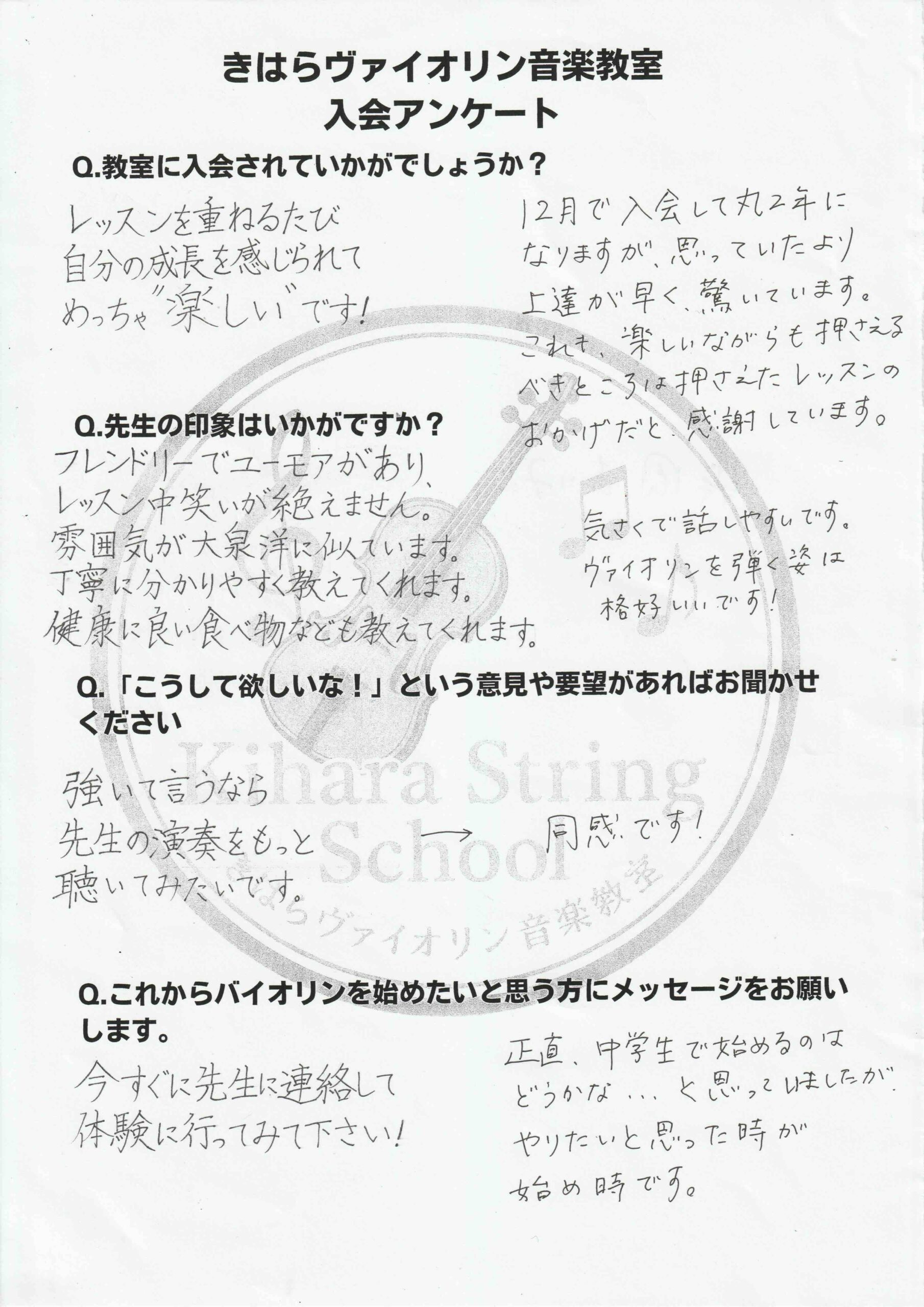 生徒さんの入会アンケートを掲載します。