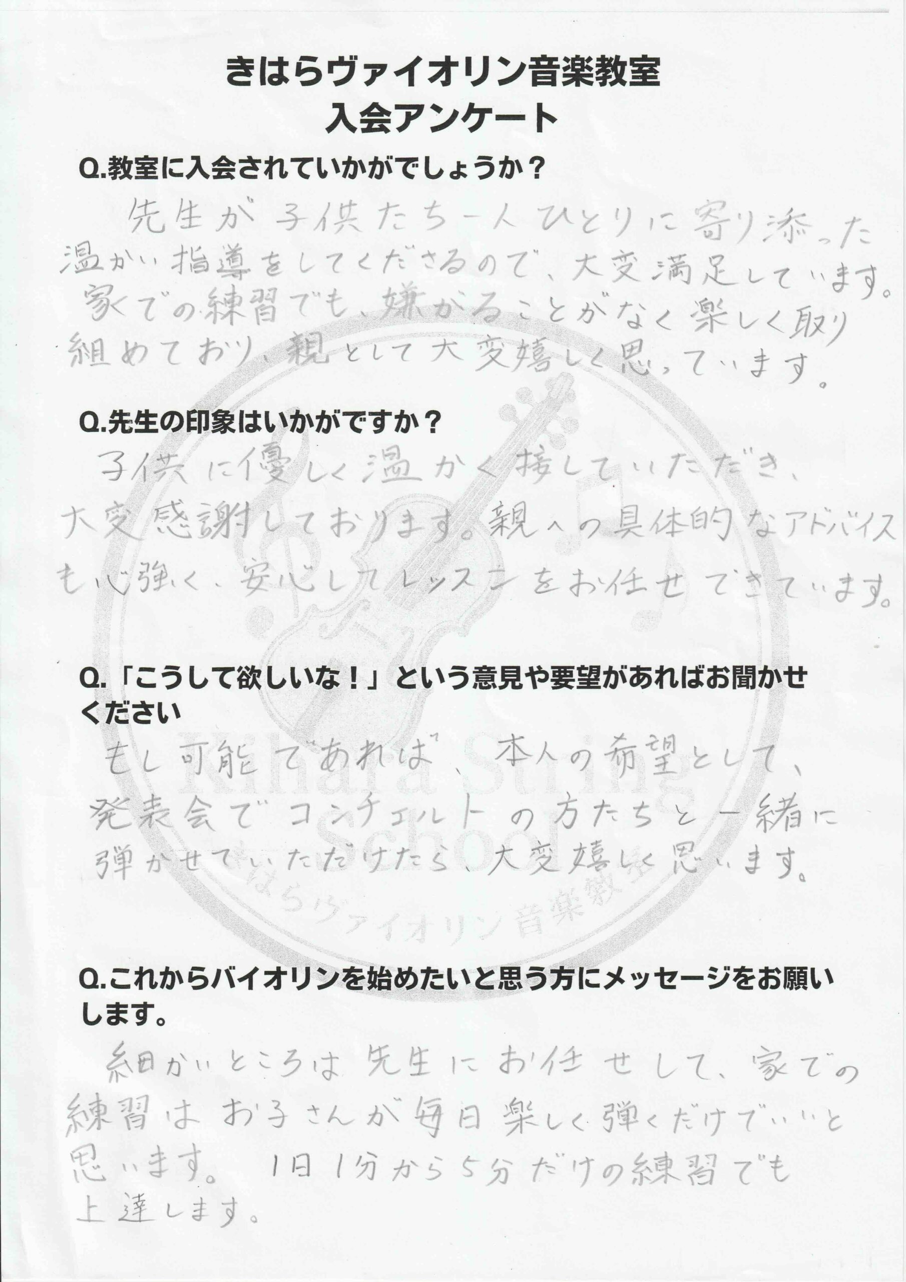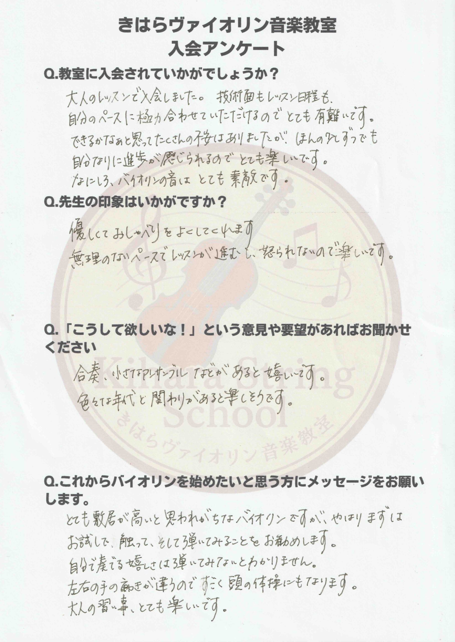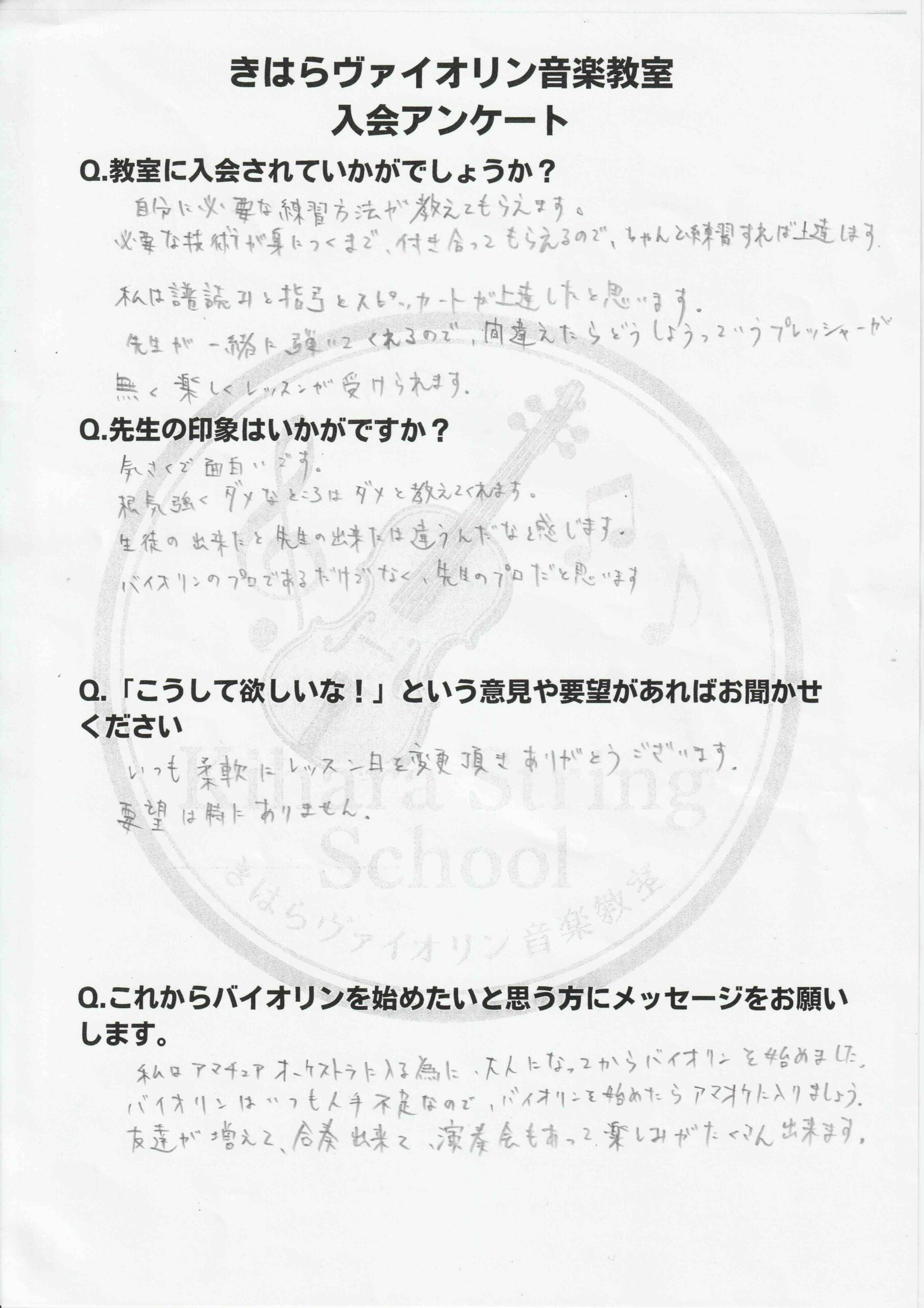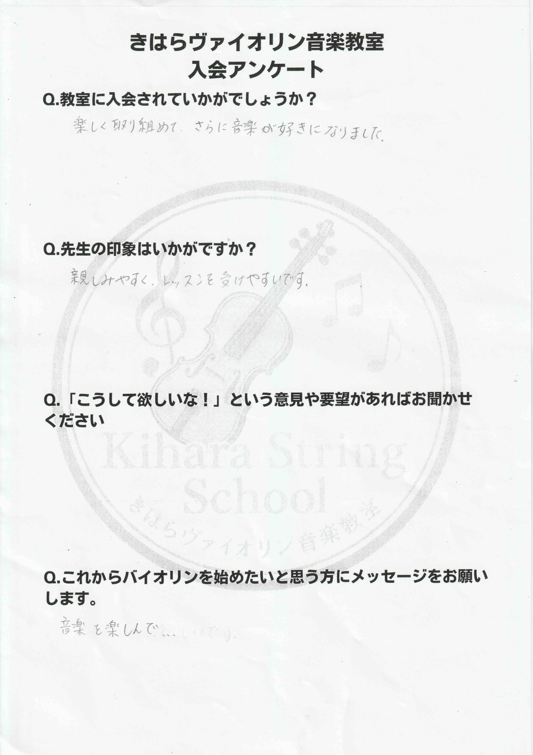 生徒さんの入会アンケートを掲載します。